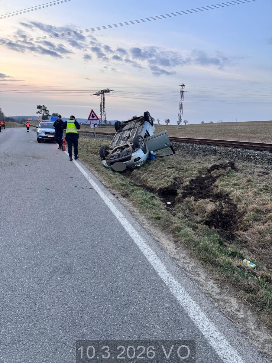 Jednotka vyjíždí na PKV KOPIS HZS JMK k dopravní nehodě jednoho osobního automobilu na silnici Velké Opatovice směr Borotín s možným vyproštěním osob. Při příjezdu zjištěno že se jedná o automobil, který havaroval do příkopu a převrátil se na střechu. Řidička mimo auto v péči ostatních řidičů. Průzkum. Převzetí do péče řidičky, poskytnut tepelný komfort, nasazen krční límec, neboť si zraněná ztěžuje na bolest hlavy a krku, vyčkání do příjezdu ZZS, následně předání zraněné. Zabezpečení místa nehody, provedeno protipožární opatření. Bez úniku pohoných hmot. Příjezd HS Boskovice, předání místa zásahu a postupováno dle rozkazů velitele zásahu. Zdokumentování nehody dopravní policií, následně společné převrácení auta na kola za pomoci automobilového navijáku HZS a odtlačení na vedlejší silnici. Odjezd na základnu.