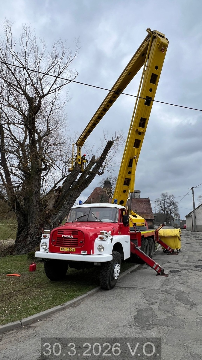 Jednotka vyjíždí na žádost místostarostu města Velké Opatovice s automobilovou plošinou do obce Roubanina, kde je proveden bezpečný ořez vzrostlé vrby, která hrozila rozlomením a pádem.