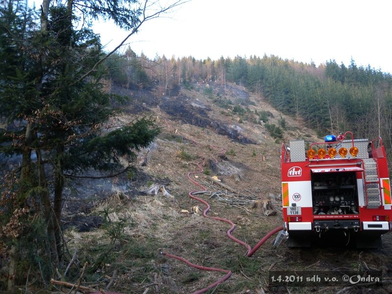 Jednotka vyjíždí na požár lesního porostu za obcí Úsobrno. Průzkumem zjištěn požár o rozloze cca 200 x 300 metrů ve strmém kopci. Za pomoci čtyř "C" proudů likvidace ohně. Rozebírání doutnajících pařezů za pomoci ženijního nářadí. Místní jednotka zústává na místě pro hlídání místa do rána. Zúčastněné jednotky SDH Velké Opatovice, SDH Úsobrno, HZS Boskovice.