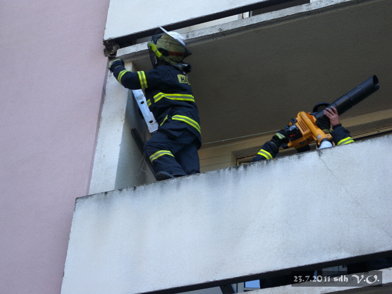 Na žádost technika obce vyjela jednotka na likvidaci obtížného hmyzu ve společných prostorách bytového domu na náměstí Míru ve Velkých Opatovicích. Na balkoně ve 3. nadzemním podlaží. Jednalo se o vosí hnízdo, které bylo za pomoci nastavovacího žebříku a motorového vysavače zlikvidováno. Po ukončení se jednotka vrátila zpět na základnu.