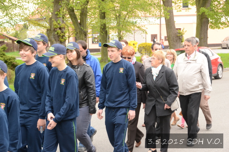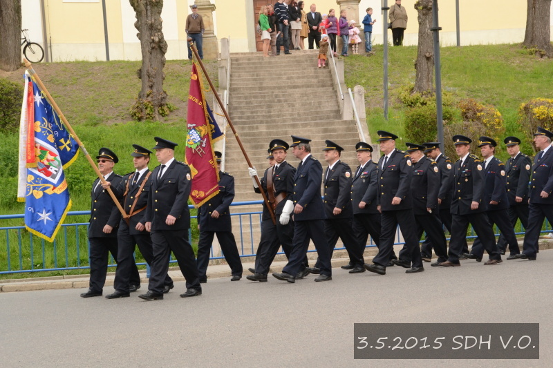 Dne 3.5.2015 již tradičně vyrazil do hasičské zbrojnice slavnostní průvod hasičských praporů a členů SDH V.O. a okolních sborů za doprovodu dechové hudby směrem ke kostelu SV. Jiří ve Velkých Opatovicích, kde proběhla mše ku cti svátku sv. Floriána, patrona všech hasičů a uctění památky zemřelých hasičů. Po mši proběhlo slavnostní svěcení nového dopravního automobilu. Poté uctění památky uložením kytice u sochy Floriána.