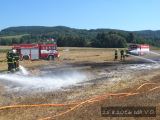 Jednotka při příjezdu na místo zásahu, provedeným průzkumem zjištěno, že se jedná o požár strniště a slámy na poli. Na místě již zasahuje HZS Boskovice a JSDH Knínice. Po domluvě s velitelem zásahu prováděno hašení požáru vysokotlakým proudem z CAS 24 a jedním proudem "C" z CAS 32. Po lokalizaci požáru prolévání požářiště vodou. Po příjezdu vyšetřovatele HZS Blansko, byla JSDH V.O. po úklidu technických prostředků, odeslána zpět na základnu. Zúčastněné jednotky: HZS Boskovice, JSDH Knínice u Boskovic, JSDH Velké Opatovice, JSDH Boskovice, HZS Blansko (vyšetřovatel).