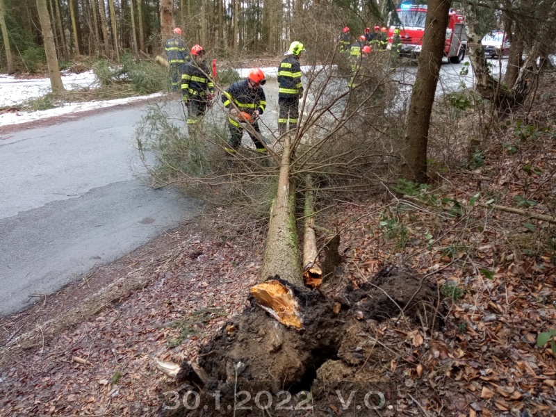 Jednotka vyjíždí na příkaz KOPIS HZS JMK k odstranění stromu na silnici Velké Opatovice směr Smolná. Průzkum. Jedná se o vyvrácený smrk ležící do poloviny silnice. Za pomoci MŘP provedeno rozřezání a poté úklid silnice. Během zásahu zastaven provoz na silnici. Odjezd na základnu. Zúčastněné jednotky: JSDH Velké Opatovice.