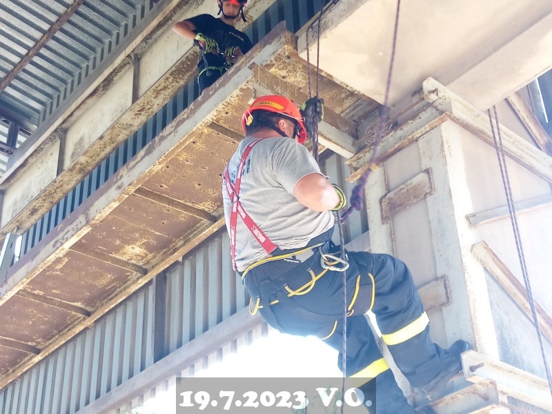Dne 19.7.2023 proběhlo praktické přezkoušení a výcvik v používání slaňovací techniky pod vedením zkušeného lektora pro členy jednotky.