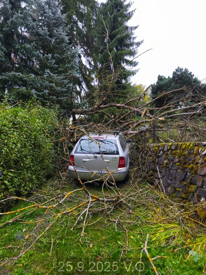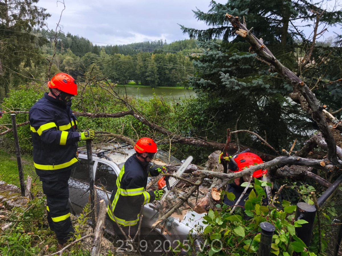 Jednotka vyjíždí dle PKV KOPIS HZS JMK k odstranění stromu, který spadl na zaparkované auto v chatové oblasti ve Velkých Opatovicích. Událost bez zranění, za pomoci motorové řetězové pily strom rozřezán, odklizen. Událost v řešení Policie ČR.