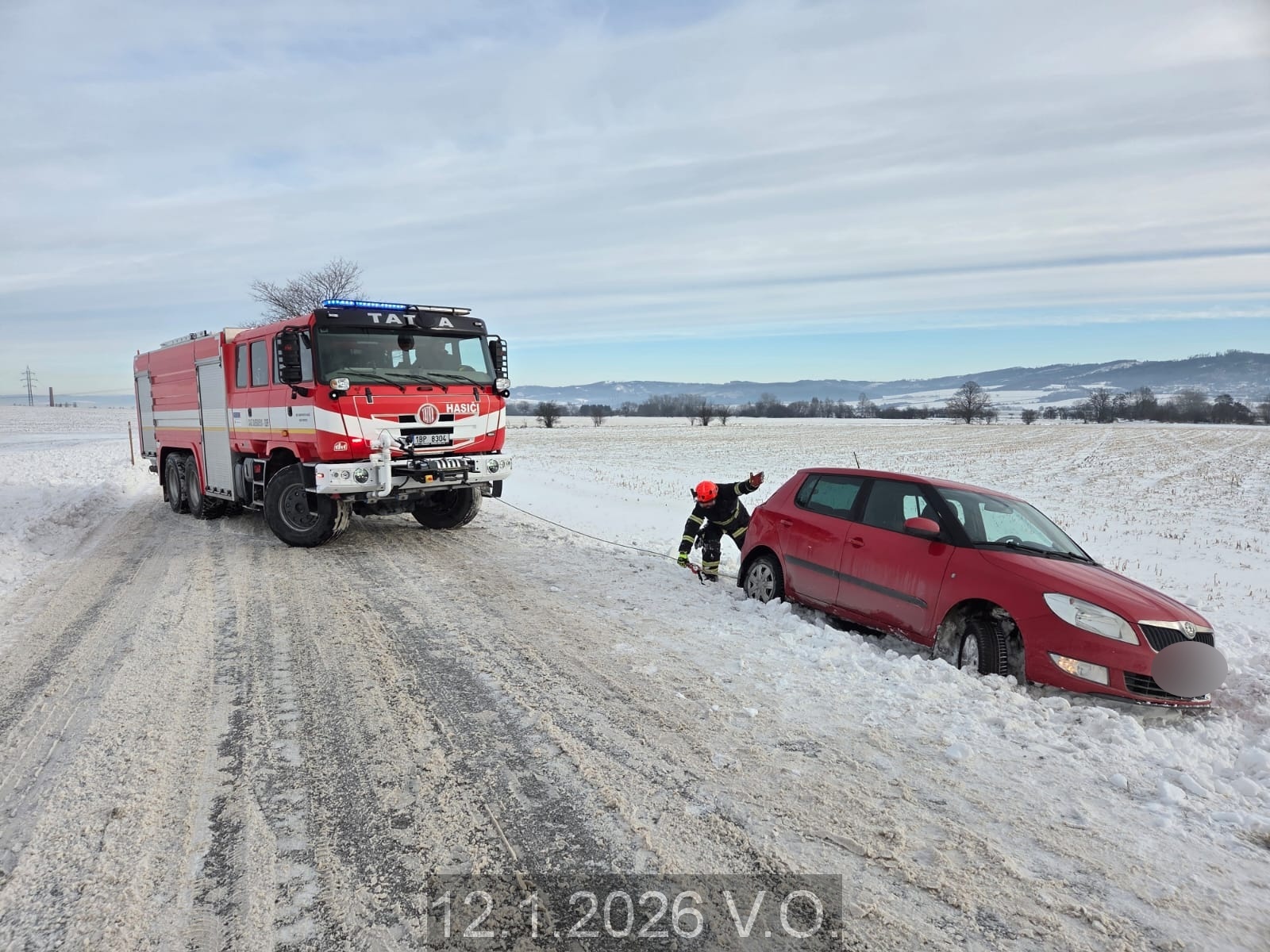 12.1.2026 DNBZ, vytažení auta z příkopu, Borotín