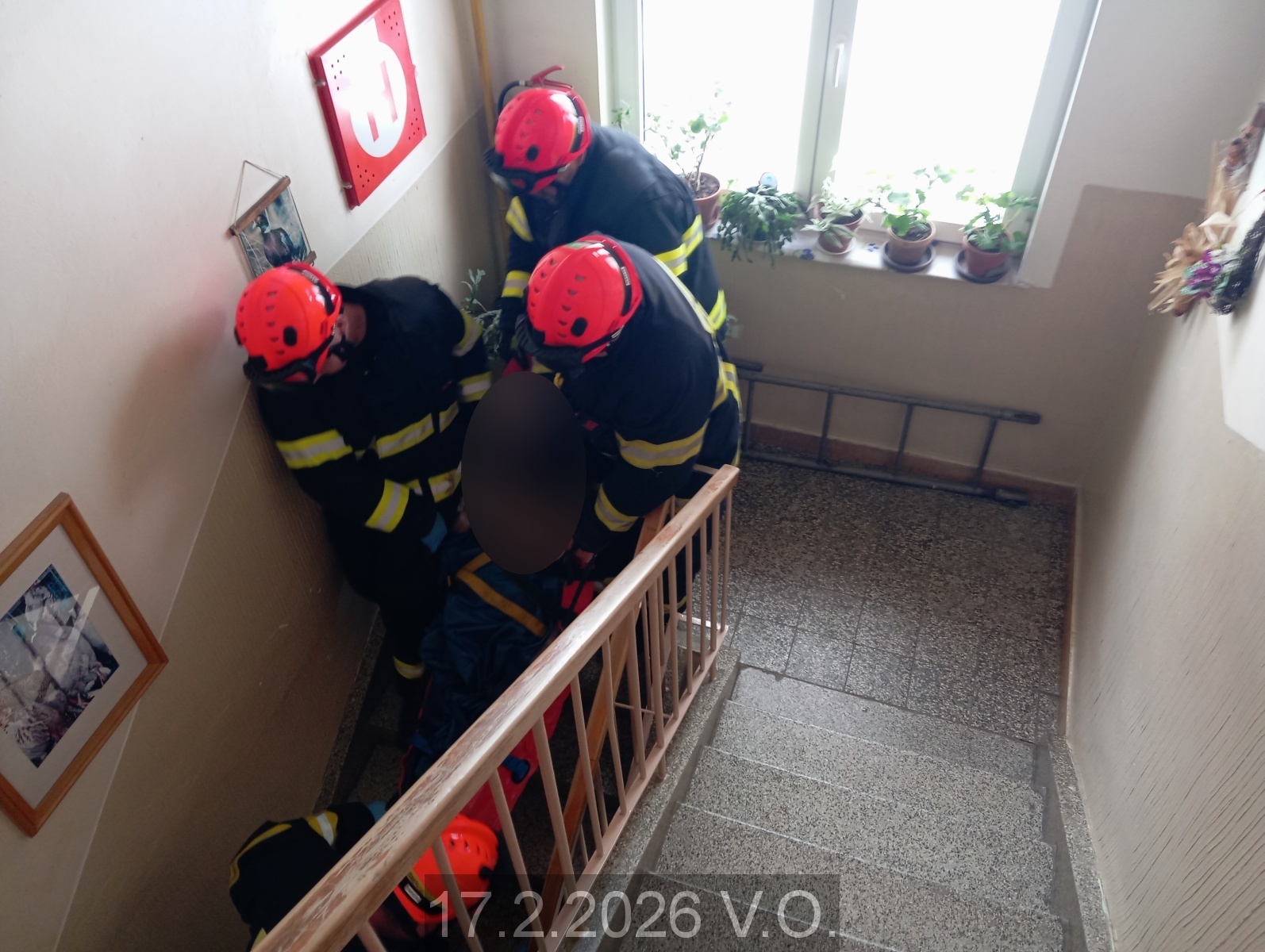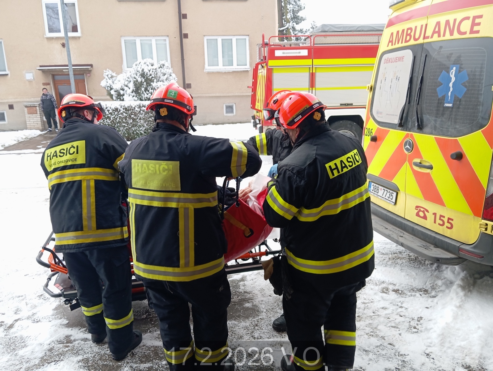 Jednotka vyjíždí na PKV KOPIS HZS JMK k transportu pacienta s poraněním omezující pohyb na žádost ZZS JMK z bytu ve městě Velké Opatovice. Při příjezdu na místě ZZS JMK. Pacient uložen do celotělové vakuové matrace a snesen do vozu ZZS. Odjezd na základnu.
