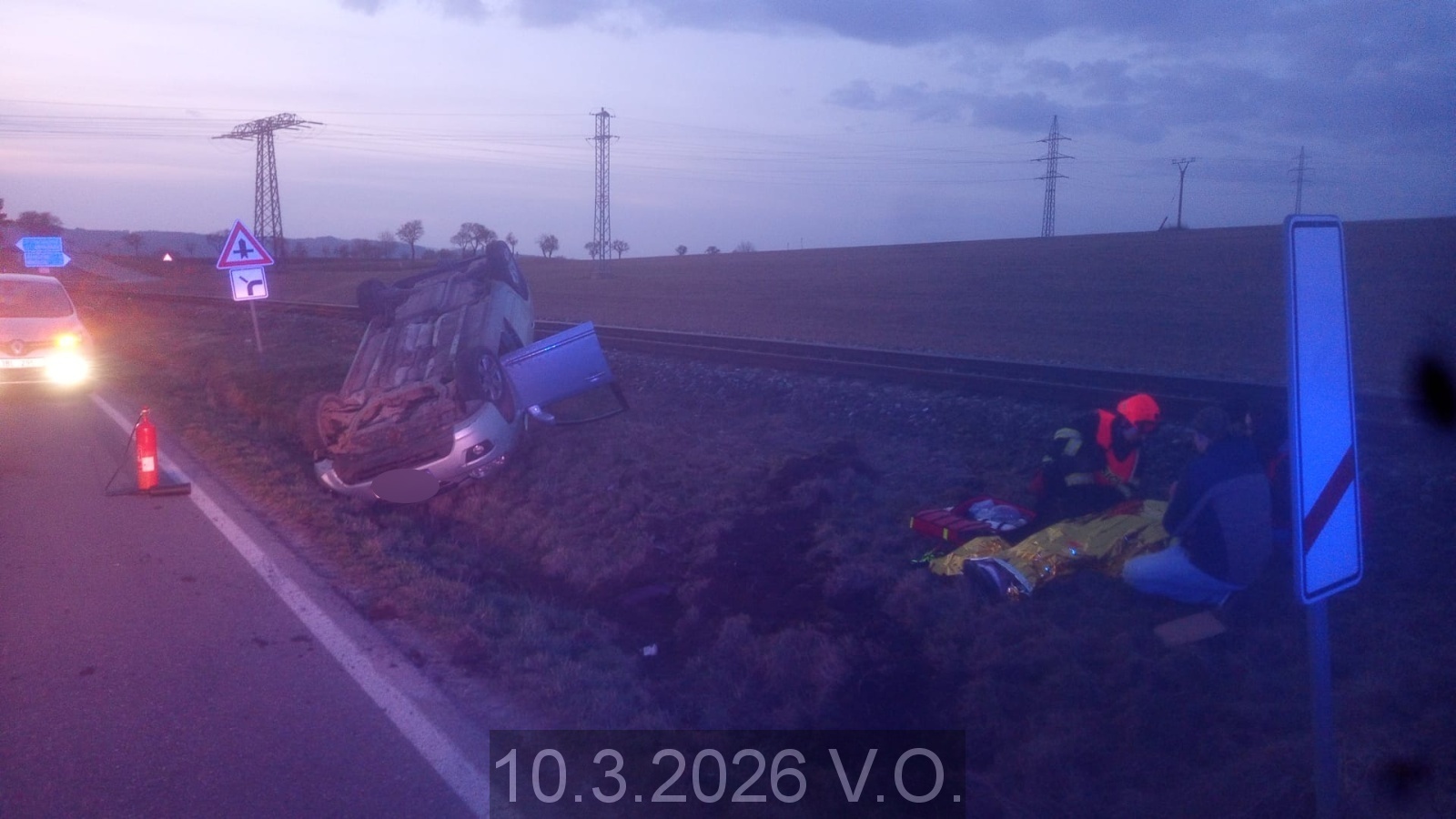 Jednotka vyjíždí na PKV KOPIS HZS JMK k dopravní nehodě jednoho osobního automobilu na silnici Velké Opatovice směr Borotín s možným vyproštěním osob. Při příjezdu zjištěno že se jedná o automobil, který havaroval do příkopu a převrátil se na střechu. Řidička mimo auto v péči ostatních řidičů. Průzkum. Převzetí do péče řidičky, poskytnut tepelný komfort, nasazen krční límec, neboť si zraněná ztěžuje na bolest hlavy a krku, vyčkání do příjezdu ZZS, následně předání zraněné. Zabezpečení místa nehody, provedeno protipožární opatření. Bez úniku pohoných hmot. Příjezd HS Boskovice, předání místa zásahu a postupováno dle rozkazů velitele zásahu. Zdokumentování nehody dopravní policií, následně společné převrácení auta na kola za pomoci automobilového navijáku HZS a odtlačení na vedlejší silnici. Odjezd na základnu.