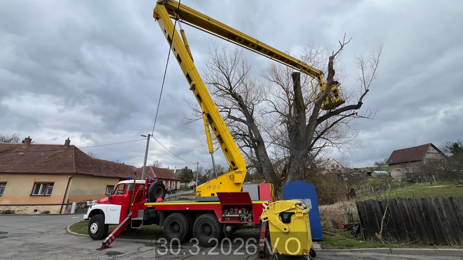 Jednotka vyjíždí na žádost místostarostu města Velké Opatovice s automobilovou plošinou do obce Roubanina, kde je proveden bezpečný ořez vzrostlé vrby, která hrozila rozlomením a pádem.